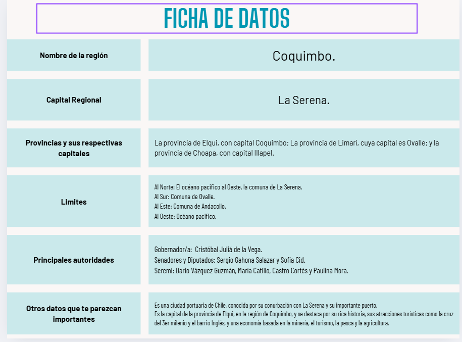 Norte chico de Chile, limitando al norte con la Región de Atacama, al sur con la Región de Valparaíso y su capital es La Serena.